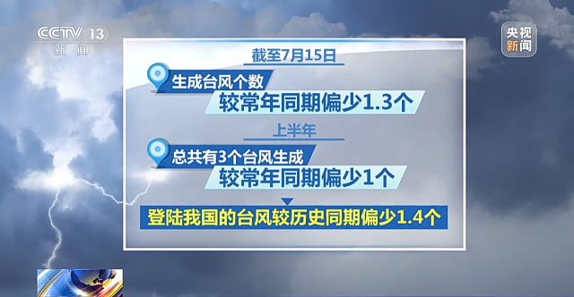 2023年以來,西北太平洋和南海共生成4個臺風,截至7月15日,生成臺風個數(shù)較常年同期偏少1.3個。其中,上半年總共有3個臺風生成,較常年同期偏少1個,登陸我國的臺風較歷史同期偏少1.4個。氣象專家表示,雖然今年生成和登陸臺風個數(shù)均偏少,但在標準差范圍之內(nèi),并不算特殊。
