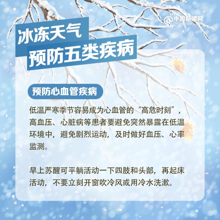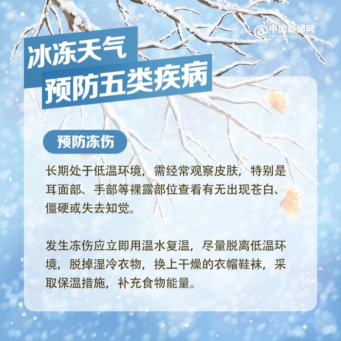 中新網(wǎng)北京2月7日電 近期我國中東部地區(qū)出現(xiàn)大范圍持續(xù)性低溫雨雪冰凍天氣過程,局部地區(qū)累計降雪量將接近或超過歷史同期,雨雪覆蓋范圍廣、持續(xù)時間長、凍雨范圍大,雨雪冰凍災(zāi)害風(fēng)險高,恰逢春節(jié)人員大規(guī)模流動,以下健康防護要點請查收。