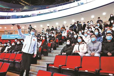 在現(xiàn)場(chǎng),陳大鵬通過“由內(nèi)及外”“由下至上”的方式,將場(chǎng)館的競(jìng)賽層、觀眾層、包廂層等流線以及各點(diǎn)位進(jìn)行了詳細(xì)的講解,并以“你需要知道的25件事”為主題,為志愿者們講解了作為場(chǎng)館工作人員必須遵守的各項(xiàng)規(guī)章制度?!斑@25件事包括志愿者在場(chǎng)館工作的方方面面,既有場(chǎng)館日常管理、防疫規(guī)定,又有志愿者工作期間個(gè)人生活及行為規(guī)范、工作紀(jì)律和文明禮儀等。”陳大鵬說。