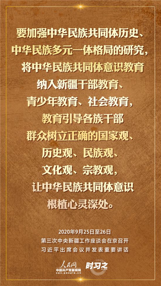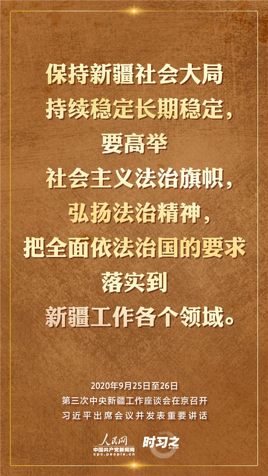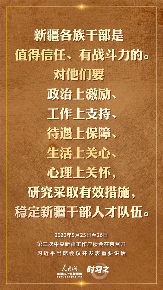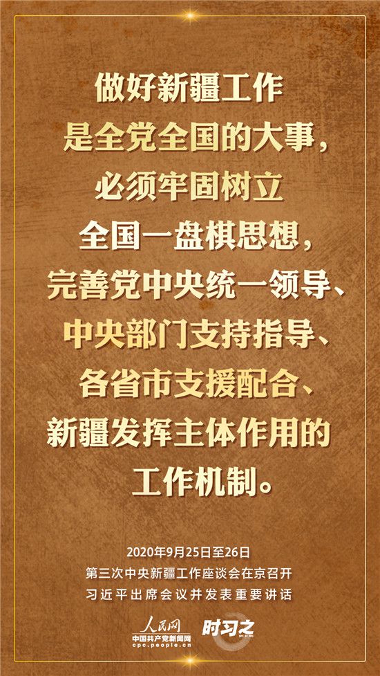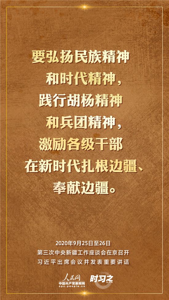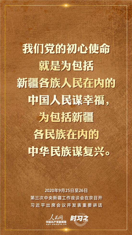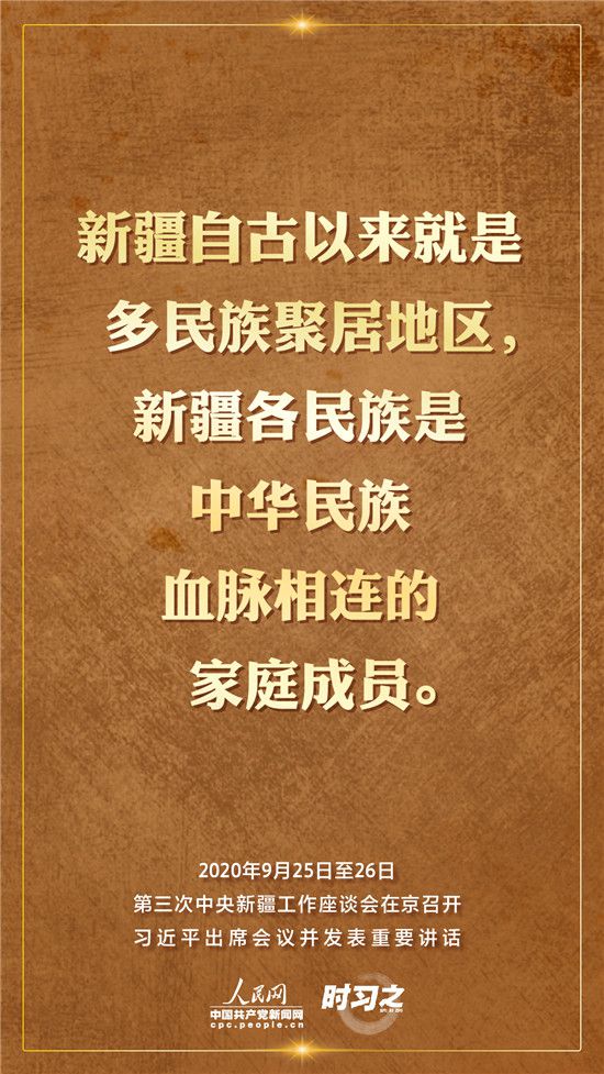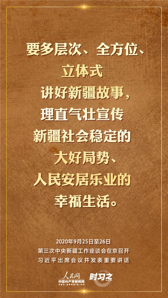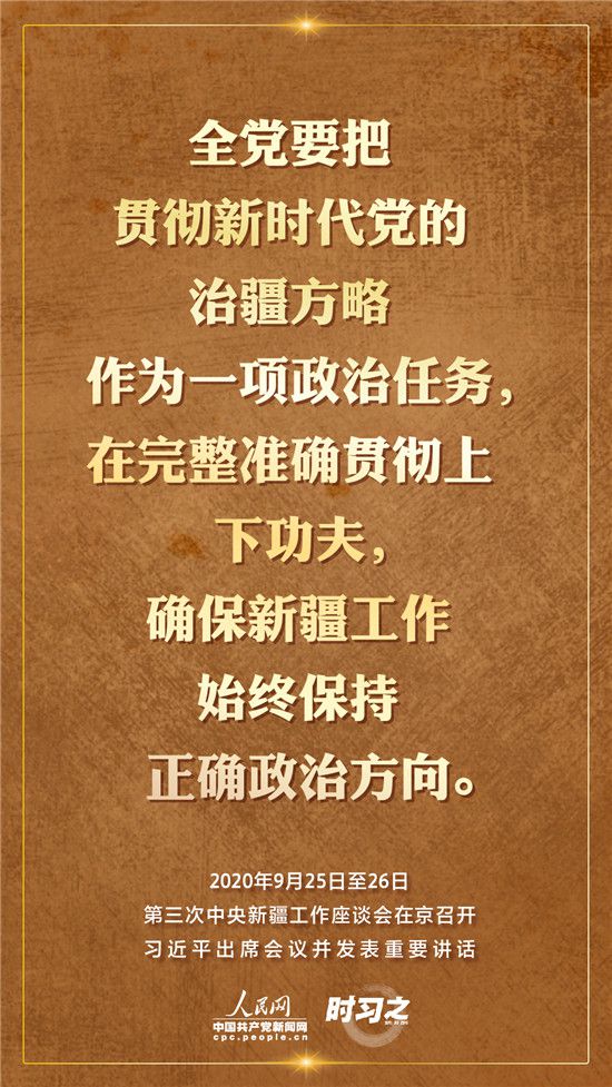9月25日至26日,第三次中央新疆工作座談會(huì)在北京召開(kāi)。習(xí)近平總書(shū)記出席會(huì)議并發(fā)表重要講話。習(xí)近平全面總結(jié)了第二次中央新疆工作座談會(huì)以來(lái)新疆工作取得的重大成效,深入分析了當(dāng)前新疆工作面臨的形勢(shì),闡釋了新時(shí)代黨的治疆方略,明確了當(dāng)前和今后一個(gè)時(shí)期新疆工作的指導(dǎo)思想、目標(biāo)任務(wù)、方針政策、戰(zhàn)略舉措,全面部署了推動(dòng)新疆社會(huì)穩(wěn)定和長(zhǎng)治久安的重點(diǎn)工作。人民網(wǎng)·中國(guó)共產(chǎn)黨新聞網(wǎng)“時(shí)習(xí)之”欄目帶您聆聽(tīng)總書(shū)記那些直抵人心的講話金句。