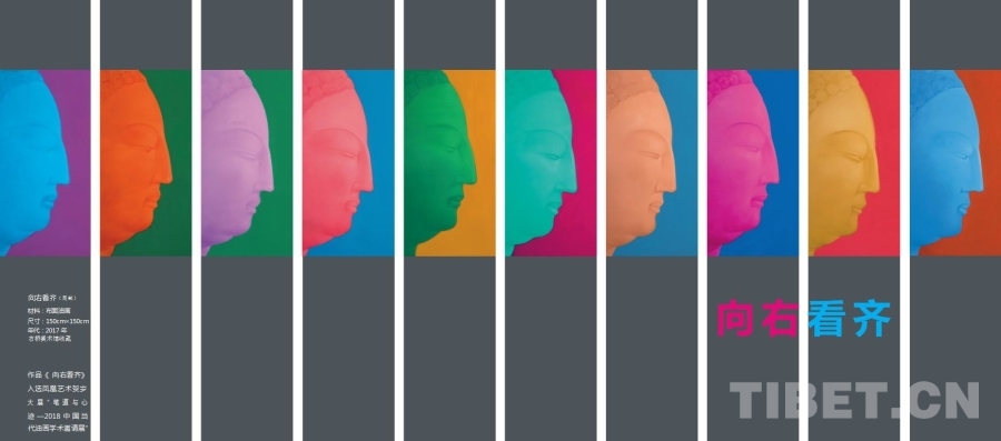 在創(chuàng)作過程中,陶宏嘗試將傳統(tǒng)佛像藝術(shù)與現(xiàn)代油畫技法相結(jié)合,融入現(xiàn)代審美元素和時代精神?!拔蚁M梦鞣降挠^念來表達(dá)東方精神,這就是互鑒與融合?!碧蘸甑挠彤嬜髌贰稘h字雕塑》《覺者》、《向右看齊》等受到沃霍爾、克洛斯的影響,中外文化在時空的交融與碰撞中,即刻產(chǎn)生出新的觀念。借助現(xiàn)代藝術(shù)手法和觀念,陶宏嘗試對佛像藝術(shù)進(jìn)行解構(gòu)與重塑。通過打破傳統(tǒng)的創(chuàng)作界限,將佛像與周圍環(huán)境、人物以及情感進(jìn)行融合,創(chuàng)造出一種新的藝術(shù)表達(dá)方式,更加自由、開放。