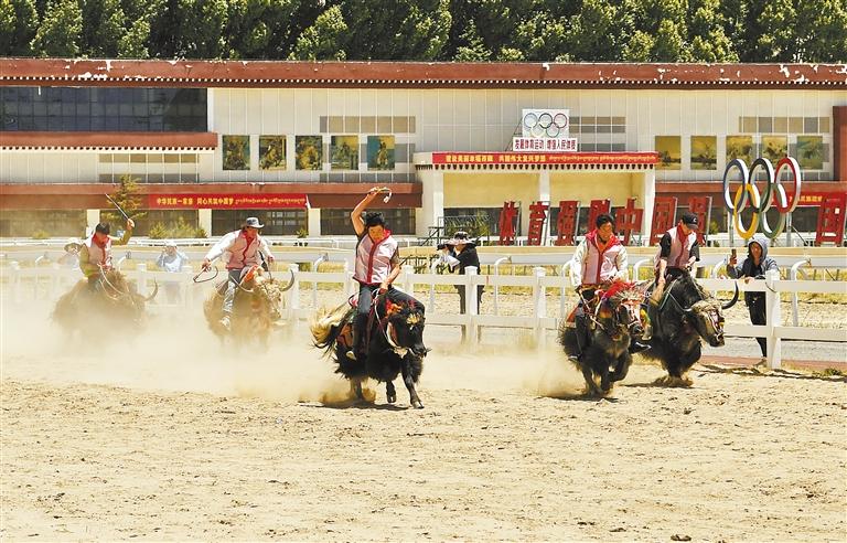 圖為6月23日,運(yùn)動(dòng)員們進(jìn)行賽牦牛比賽。記者 唐斌 攝