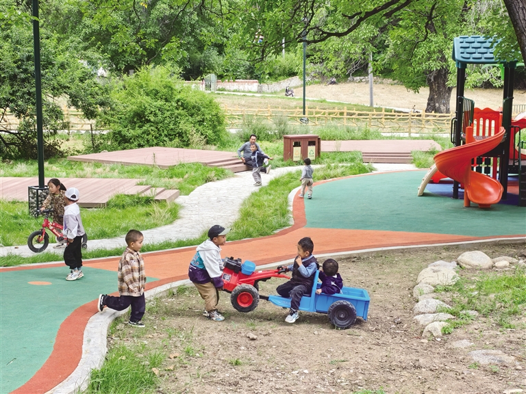 在加查“長壽村”玩耍的孩童。