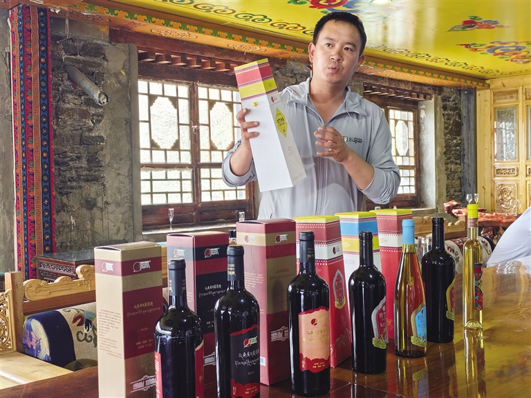 酒莊負責人介紹道:“我們的葡萄酒采用自產(chǎn)的高原葡萄品種釀制而成,具有獨特的風味和口感。近年來,隨著旅游業(yè)的發(fā)展,我們的葡萄酒也受到了越來越多游客的喜愛。”