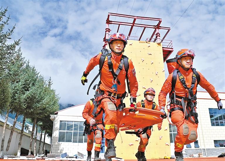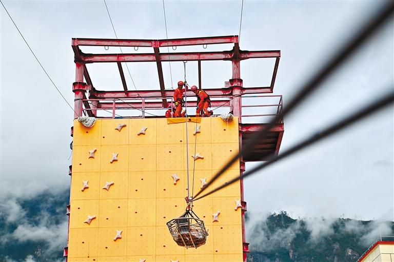 開展斜向救援技術訓練。通訊員 西繞拉翁 記者 謝筱純 王珊 攝