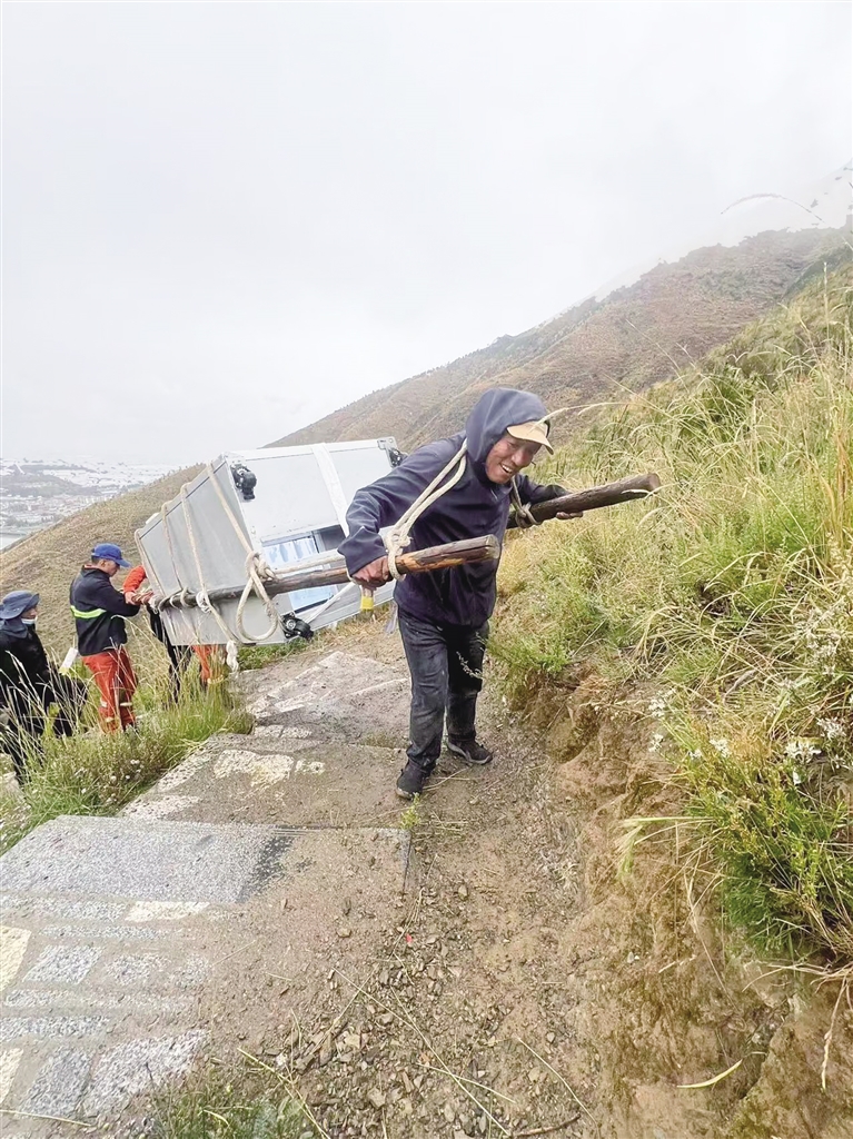 為了方便游客喝到平價飲料,單位引進了12臺售賣機,安裝在公園各個角落,售賣機里各種飲料、礦泉水等商品跟超市售賣的價格基本一致。扎西曲培說,他們將售賣機安裝在海拔4000米的地方,過程是艱難的。一臺售賣機重約400斤,車輛上不去,他和森林消防隊員通過人背肩扛,一步步抬上去的。目前,在南山公園“祖國萬歲”的山峰處,大家口渴了,拿出手機掃描一下,即可喝到平價的礦泉水。
