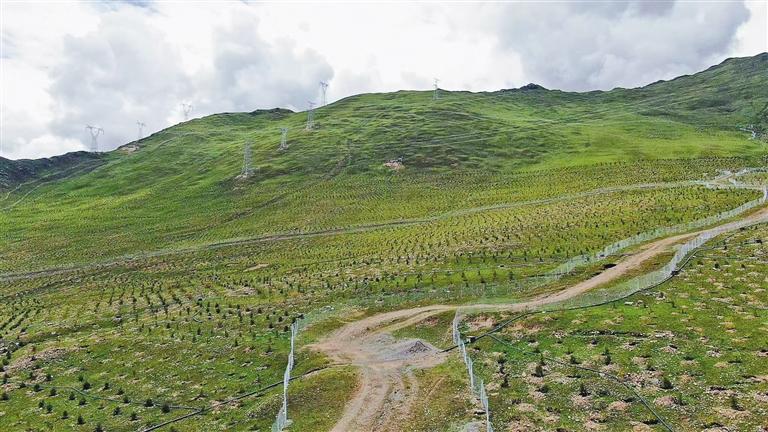 “歡迎來到南北山綠化工程現(xiàn)場!”指揮部工作人員頓珠迎面走來,熱情洋溢地說。他翻開隨身攜帶的工作日志,密密麻麻的記錄映入眼簾:“截至目前,我們已栽植161萬余株苗木,種植穴和網(wǎng)圍欄等基礎工程全部完工?!表樦闹敢ィy灰色的網(wǎng)圍欄在晨光中閃爍,如鋼鐵長城般蜿蜒于群山。