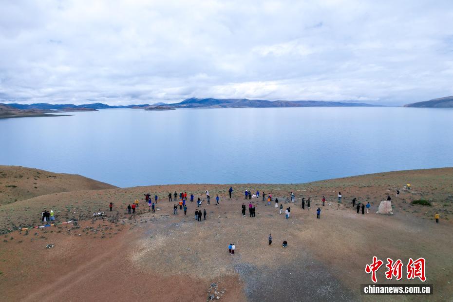 7月22日,游客游覽拉昂錯(cuò)?,斉杂哄e(cuò)與拉昂錯(cuò)位于西藏阿里地區(qū)普蘭縣境內(nèi),兩湖僅有一堤之隔,卻擁有不同的地理特征和咸淡水之分,因而分別被譽(yù)為“圣湖”與“鬼湖”。每年夏天,兩湖與附近的岡仁波齊一道,吸引眾多游客前來賞景游覽。(無人機(jī)照片)