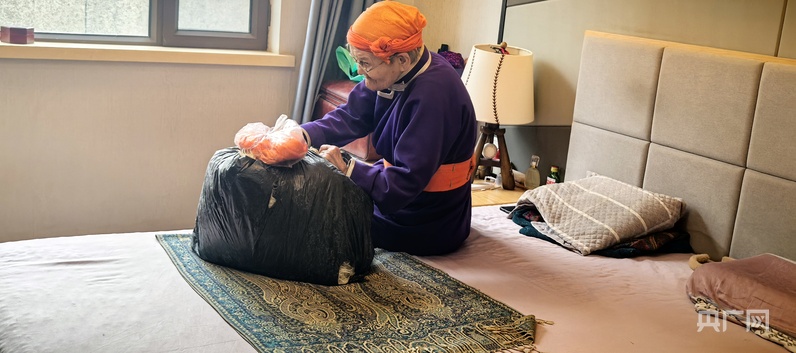 都貴瑪額吉收拾冬天要穿的棉袍(央廣網(wǎng)見習(xí)記者 邵玉琴 攝)