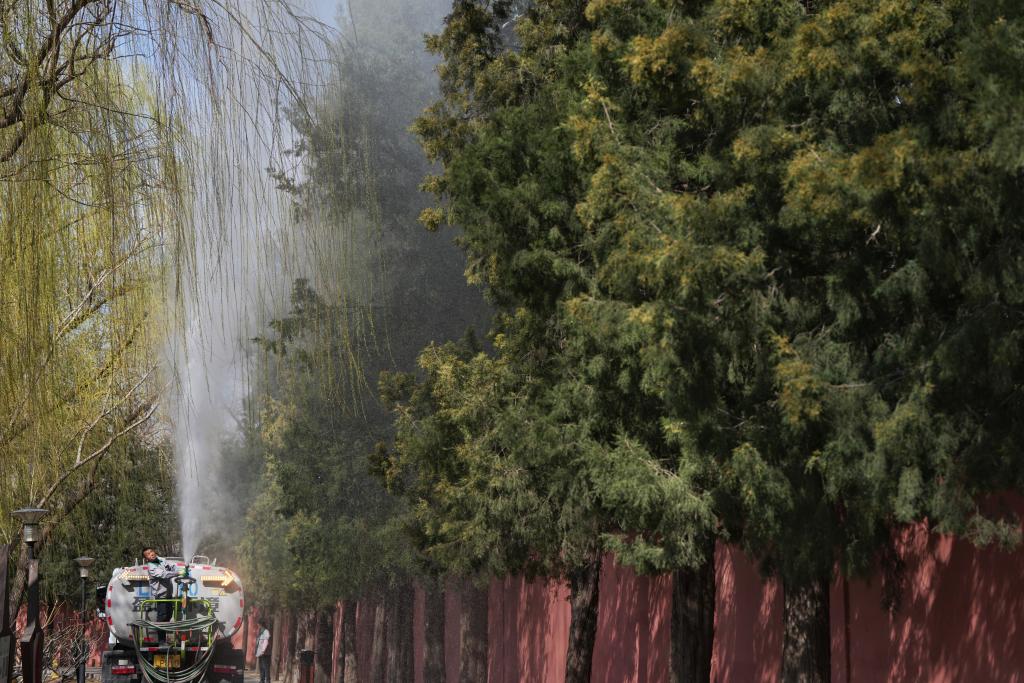 北京市園林綠化局科技處副處長張博說,為減少花粉對市民生活的困擾,園林部門正緊鑼密鼓降低花粉濃度,例如結(jié)合日常養(yǎng)護,采用修剪花枝、灑水噴淋、地面濕化等措施減少檜柏等樹種的花粉飄散量,及時清掃濕化后散落到地面上的花粉?!拔覀円蠊珗@等圓柏密度高的單位,下午1點到3點重點開展沖淋作業(yè)。”
