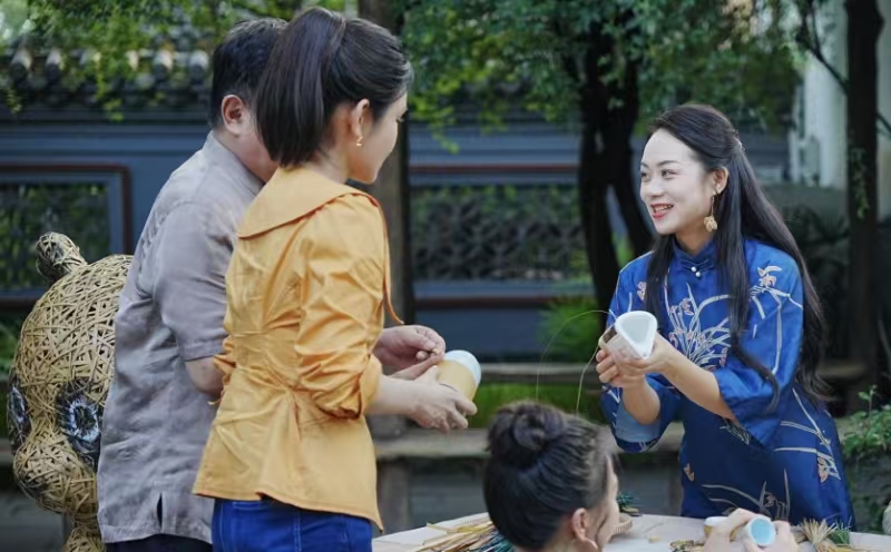 當(dāng)然,文旅發(fā)展成效如何,最直接的體現(xiàn)是能否讓村民受益。村民倪龍2023年返鄉(xiāng),與妻子共同辦起民宿“竹里香居”。竹編屏風(fēng)、竹制燈罩,將民宿裝點(diǎn)得古樸雅致?!盀榱藢⒅裎幕捅镜卮ㄎ髁直P的民俗生活緊密結(jié)合,我們特意設(shè)計(jì)了這種民宿風(fēng)格。如果竹編藝人需要展示作品,我們也會(huì)提供場(chǎng)地,畢竟民宿也是村里的‘文化名片’。”倪龍說。