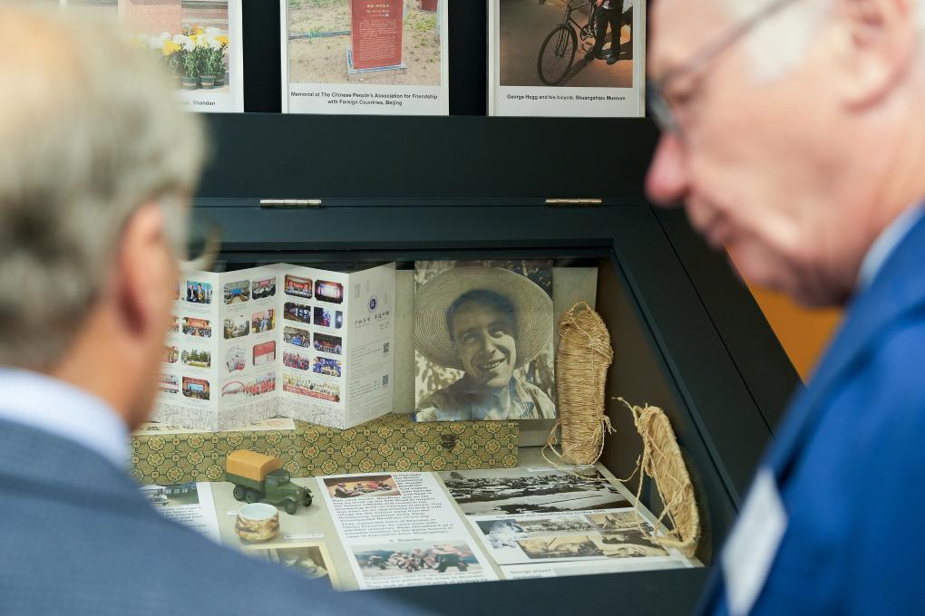 7月22日,在英國赫特福德郡哈彭登鎮(zhèn),人們觀看何克紀念展。新華社記者 吳魯 攝