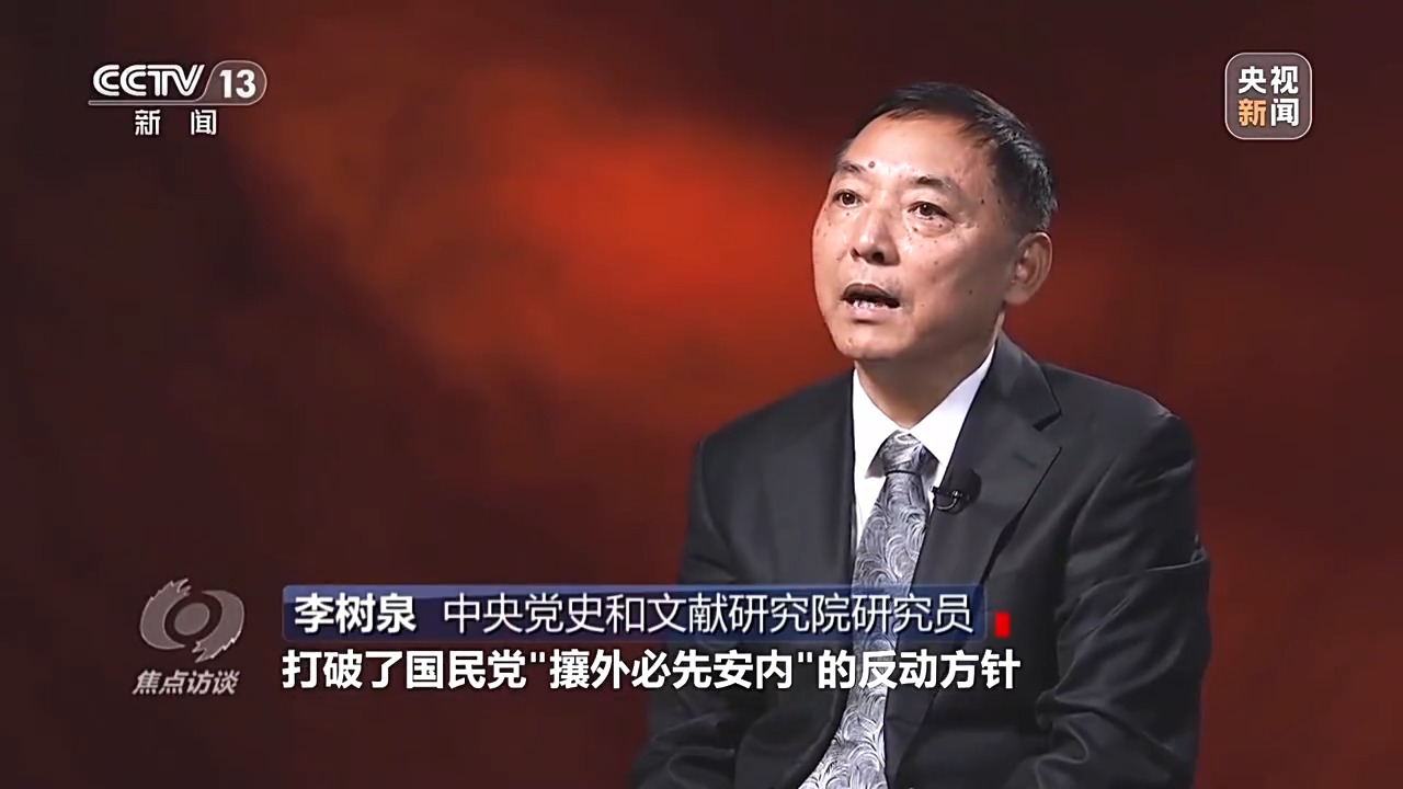 中央黨史和文獻(xiàn)研究院研究員 李樹(shù)泉:首先在政治上打破了國(guó)民黨“攘外必先安內(nèi)”的反動(dòng)方針,形成了“地?zé)o分南北,人無(wú)分老幼”全國(guó)抗戰(zhàn)的局面,在軍事上就形成了敵后戰(zhàn)場(chǎng)和正面戰(zhàn)場(chǎng)的戰(zhàn)略配合,這樣就陷日本侵略者于人民戰(zhàn)爭(zhēng)的汪洋大海。