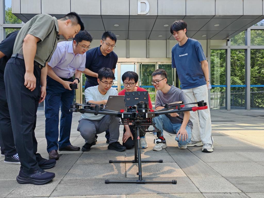 8月13日,北京航空航天大學(xué)師生進(jìn)行自研仿復(fù)眼偏振組合導(dǎo)航系統(tǒng)無(wú)人機(jī)聯(lián)調(diào)測(cè)試。(張之軒 攝)