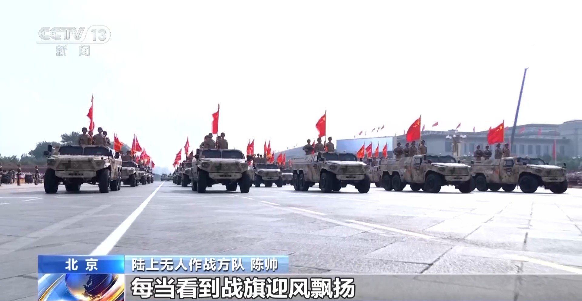 陸上無人作戰(zhàn)方隊 張雨風:如今,我們擁有了先進的武器裝備,更要牢記中華民族一路走來的艱辛,牢記人民軍隊使命初心,弘揚好抗戰(zhàn)偉大精神,把手中先進武器裝備轉化為部隊實際作戰(zhàn)能力,聚力打贏實現(xiàn)建軍一百年奮斗目標攻堅戰(zhàn)。