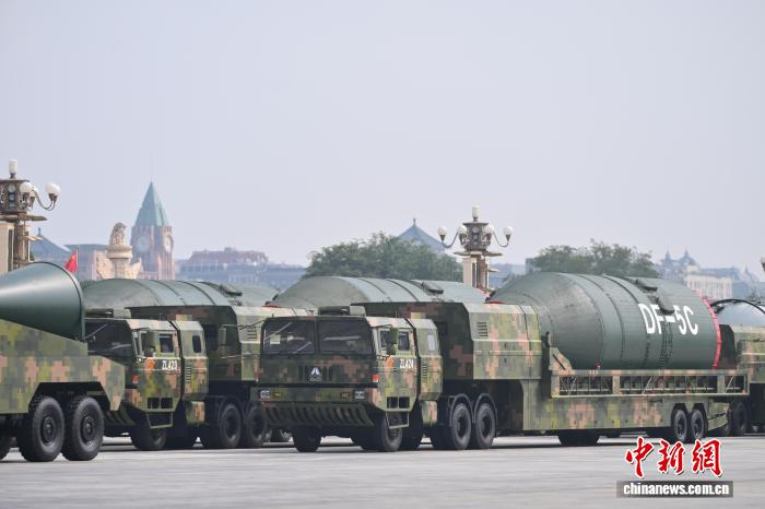 9月3日,紀念中國人民抗日戰(zhàn)爭暨世界反法西斯戰(zhàn)爭勝利80周年大會在北京隆重舉行。圖為核導(dǎo)彈第二方隊“東風(fēng)-5C”液體洲際戰(zhàn)略核導(dǎo)彈駛過天安門廣場。 中新網(wǎng)記者 趙文宇 攝