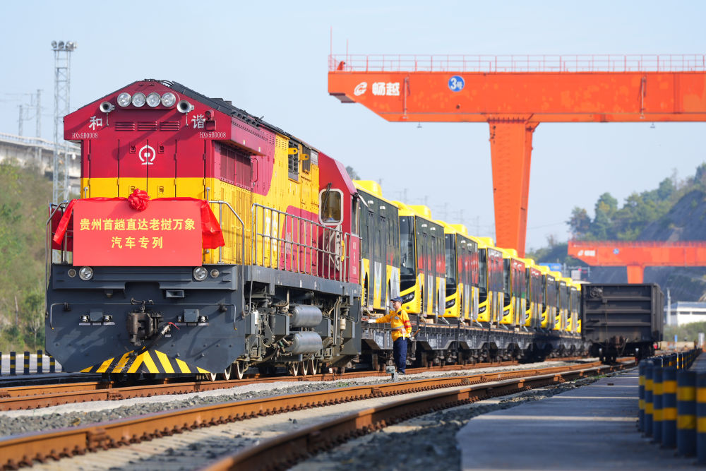 2024年10月28日,裝載著28輛“貴州造”新能源客車的出口專列??吭谫F陽(yáng)國(guó)際陸港都拉營(yíng)站,準(zhǔn)備經(jīng)由云南磨憨口岸出境前往老撾萬(wàn)象。這是貴州的中老班列首次整列直發(fā),也是貴州本土生產(chǎn)的新能源客車首次出口老撾。