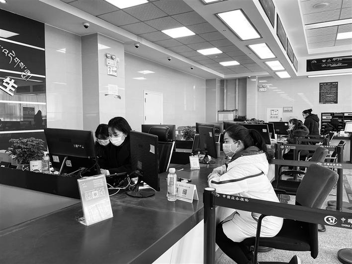 市民在拉薩市人社局人社大廳辦理業(yè)務。