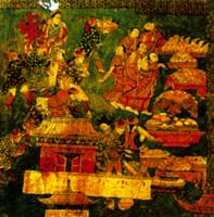 描繪清帝對五世達賴及其隨行人員的貢賞圖(布達拉宮壁畫)