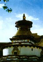 江孜白居寺新佛塔上的佛眼,形似印度教濕婆神。融合薩迦、噶當、格魯三教派建筑風格的白居寺始建于1414年。