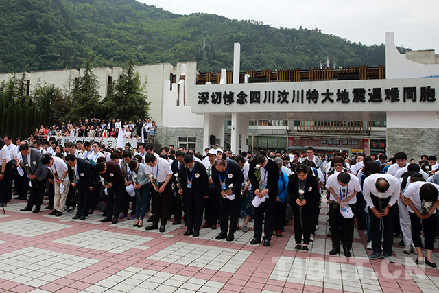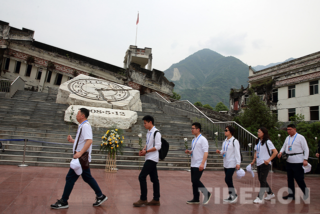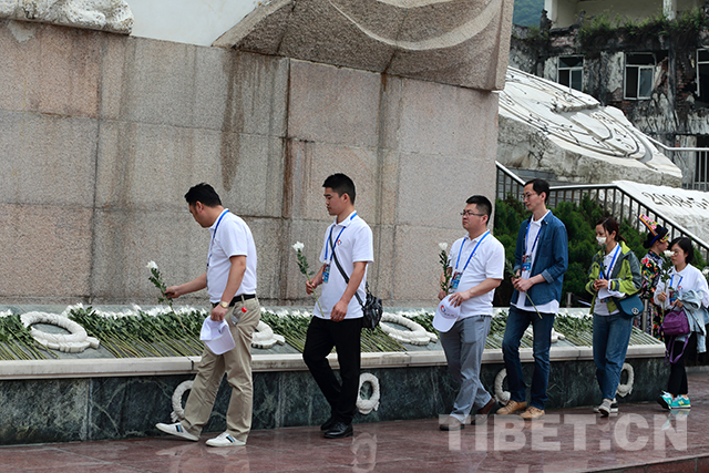 隨后,志愿者們有序前往映秀震中紀(jì)念館緬懷遇難同胞,偉大的抗震救災(zāi)精神和汶川的十年巨變?cè)僖淮喂奈韬图?lì)了在場(chǎng)的所有志愿者。