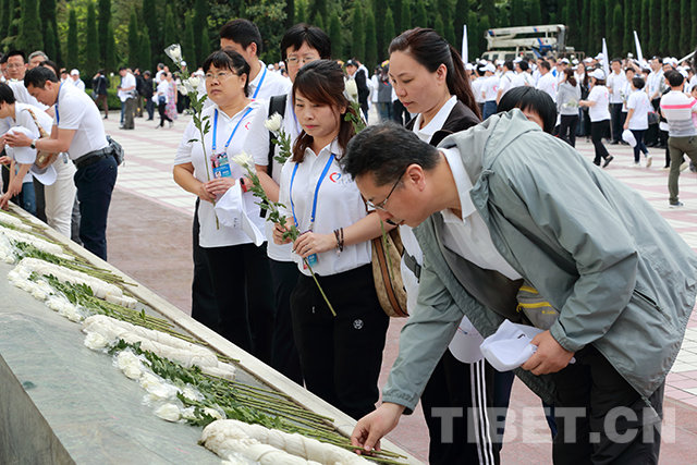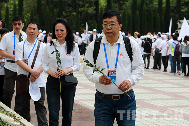 中國西藏網(wǎng)訊 4月30日上午,在四川省阿壩藏族羌族自治州汶川縣漩口中學(xué)廣場(chǎng),600余位“同心?共鑄中國心”志愿者莊嚴(yán)肅立,共同悼念汶川特大地震遇難同胞。
