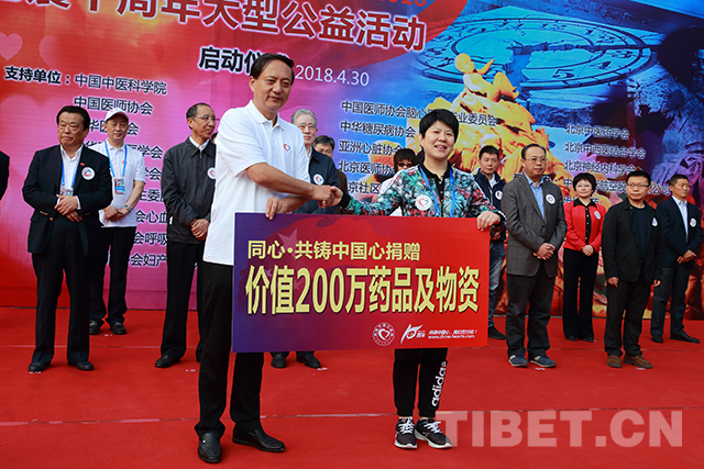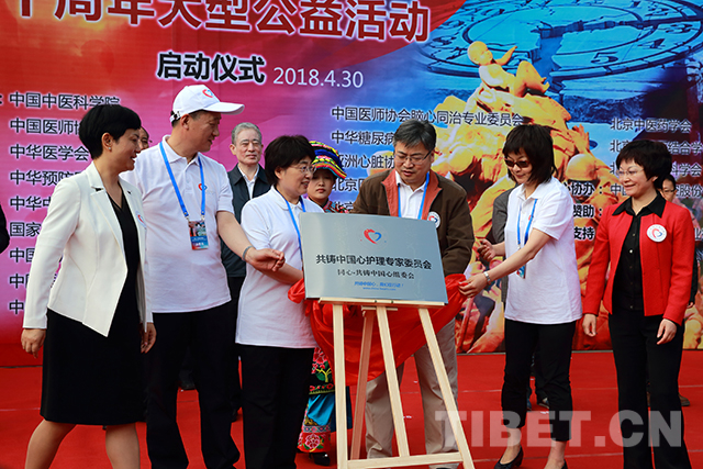 中央統(tǒng)戰(zhàn)部斯塔同志,“同心?共鑄中國(guó)心”組委會(huì)執(zhí)行主席、中華醫(yī)學(xué)會(huì)副會(huì)長(zhǎng)、北京醫(yī)學(xué)會(huì)會(huì)長(zhǎng)金大鵬,中共四川省委藏區(qū)辦專職副主任徐君,四川省衛(wèi)生計(jì)生委副主任來(lái)建共同為共鑄中國(guó)心“因病返貧”救助專業(yè)委員會(huì)揭牌。