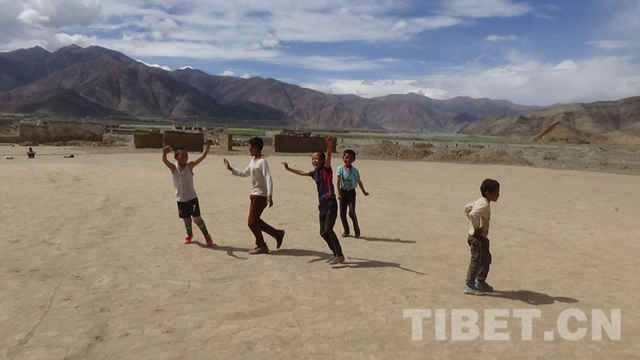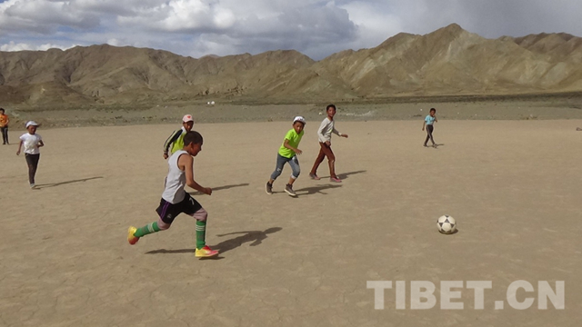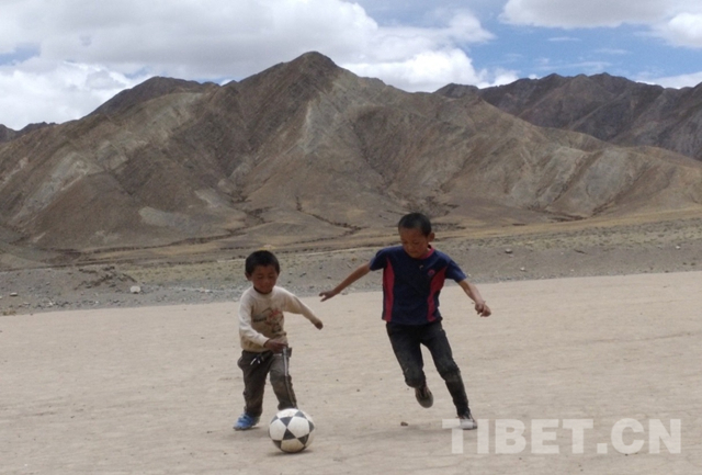 照片里個子最高的就是夏雜小小足球隊(duì)的隊(duì)長——貢嘎扎西,本以為他會是足球隊(duì)的前鋒,誰知他卻是防守的中堅(jiān)力量——司職后衛(wèi)。今天他可解圍了不少威脅球。前排中間這個剛剛掉了右邊門牙的少年名叫多吉普拉,“別看我牙都沒長齊,但我是前鋒”。在剛剛結(jié)束的這場夏雜村足球賽中獨(dú)中兩元,他就是夏雜村足球隊(duì)未來的“C羅”。這里——4100米海拔的“魔鬼主場”就是他們的主場。