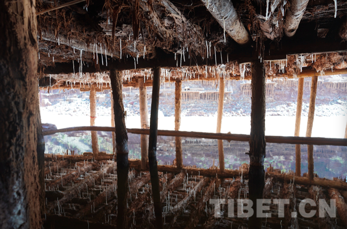 從河的東岸看鹽田所在的加達村。五六十戶人家,三百來人,經(jīng)營著近百畝的鹽田。河岸是個斜坡。人們用木頭搭成一塊塊鹽田,鹵水除了經(jīng)過暴曬蒸發(fā)一部分水份外,還通過懸空的鹽池滲漏部分水份,這樣,就加快了鹽的形成。