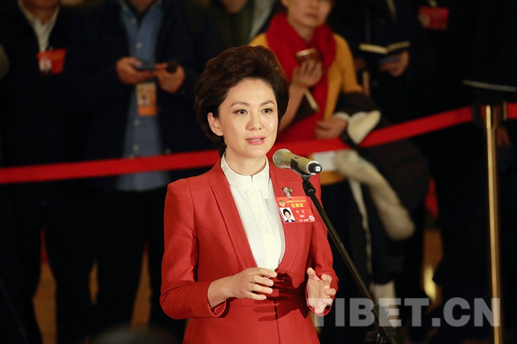 圖為全國(guó)政協(xié)委員海霞在“委員通道”上回答記者提問(wèn)。攝影:陳衛(wèi)國(guó)