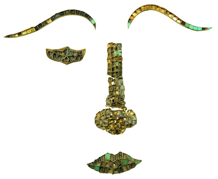圖為鑲嵌綠松石的金覆面——青海都蘭熱水墓群案追繳 圖片來(lái)源:國(guó)家文物局