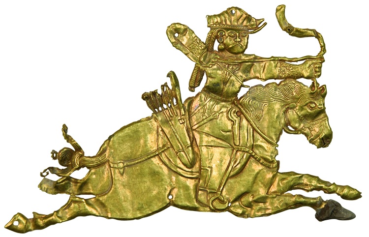 圖為騎射形金飾片——青海都蘭熱水墓群案追繳 圖片來(lái)源:國(guó)家文物局