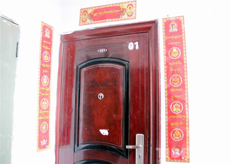 圖為南科鄰居家門口貼的藏文春聯(lián) 攝影:劉莉