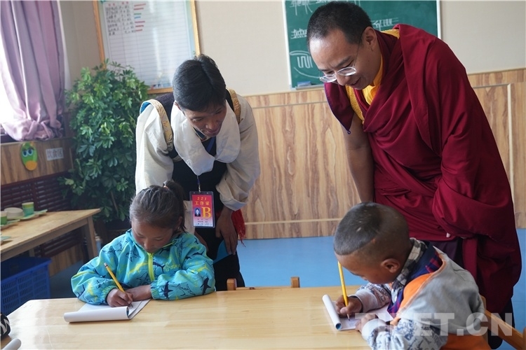 在寬敞明亮的教室里,十一世班禪看望了福利院的孩子們,看到兒童福利院的員工們耐心周到的工作作風(fēng),孩子們穿著整齊漂亮的民族服裝,生活在溫馨舒適的生活環(huán)境里,受到體貼入微的照顧和良好的教育,十一世班禪感到十分高興和感動(dòng)。十一世班禪說:“學(xué)校環(huán)境很好,要好好學(xué)習(xí),將來(lái)才能更好地建設(shè)家鄉(xiāng)。”