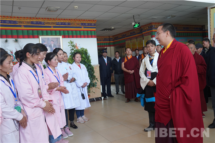 圖為十一世班禪看望阿里地區(qū)“雙集中”供養(yǎng)中心的老人時(shí),對(duì)該中心工作人員殷切寄語(yǔ) 攝影:王淑
