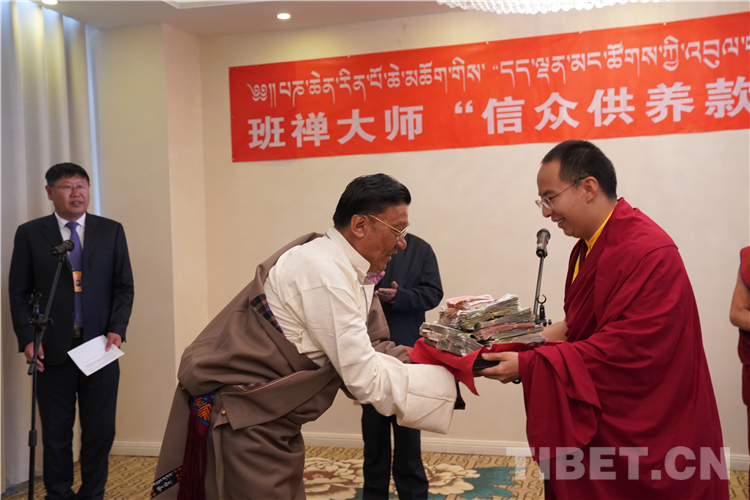圖為十一世班禪“信眾供養(yǎng)款”捐贈(zèng)儀式 攝影:王淑