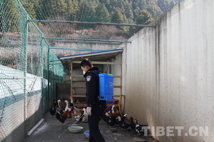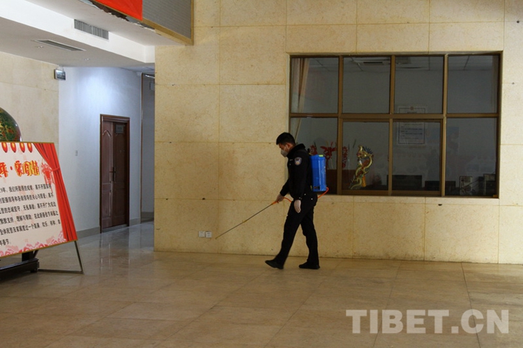 圖為亞東站衛(wèi)生員對營區(qū)重點部位進(jìn)行消毒