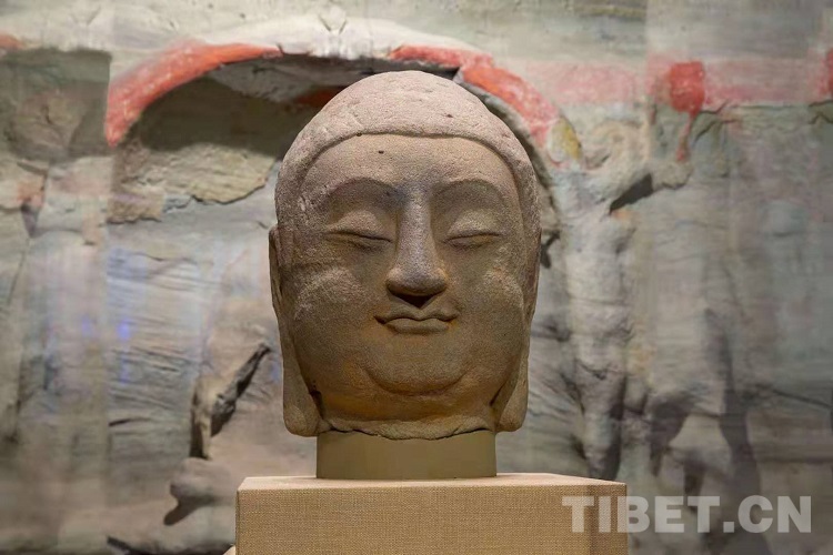 圖為“復(fù)興路上 國(guó)寶歸來(lái)”特展上的山西天龍山石窟“第8窟北壁主尊佛首” 國(guó)家文物局供圖