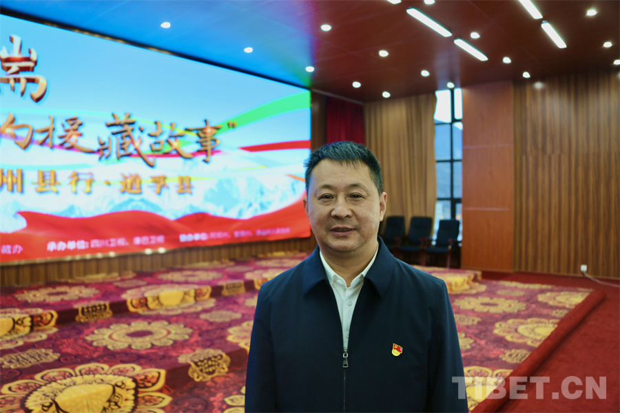圖為道孚縣委常委、副縣長(zhǎng)、成都市郫都區(qū)第七批對(duì)口支援工作隊(duì)領(lǐng)隊(duì)劉彥君接受記者采訪 攝影:龍真多吉