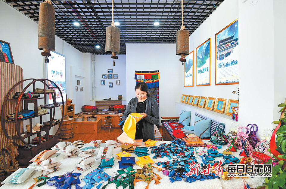 位于卓尼縣商業(yè)街的德琴巧手民俗文化旅游發(fā)展貿(mào)易有限公司,帶動(dòng)許多婦女實(shí)現(xiàn)家門(mén)口就業(yè)。