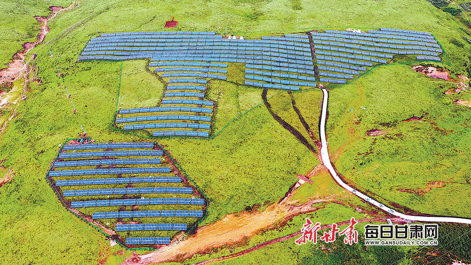 卓尼縣那子卡村連片的太陽(yáng)能電板。