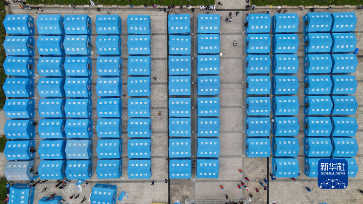 這是9月6日拍攝的位于石棉縣王崗坪鄉(xiāng)挖角村村委會(huì)的安置點(diǎn)(無人機(jī)照片)。新華社記者 胥冰潔 攝