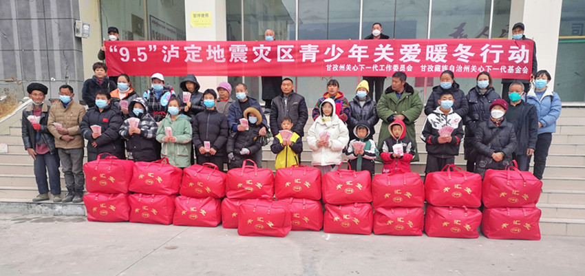 年關(guān)將至,新年將到。為切實(shí)幫助地震災(zāi)區(qū)青少年溫暖過冬,迎接災(zāi)后的第一個(gè)新年,甘孜州關(guān)工委、關(guān)心下一代基金會及時(shí)開展了 。為瀘定縣受地震影響嚴(yán)重鄉(xiāng)鎮(zhèn)的100名青少年發(fā)放慰問金10萬元,送去價(jià)值2萬元的愛心包100個(gè);為海螺溝寄宿制小學(xué)和磨西中學(xué)學(xué)生發(fā)放價(jià)值29萬元的防寒服和冬鞋1019套;為磨西鎮(zhèn)幼兒園、燕子溝鎮(zhèn)幼兒園送去價(jià)值10萬元的園服430套、毛毯430床、青少年活動室書柜5組;為康定、九龍受地震波及較重鄉(xiāng)(鎮(zhèn))的1650名青少年發(fā)放價(jià)值115萬元的暖心包1650個(gè)。