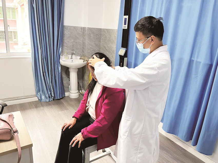 徐英俊通過檢查發(fā)現(xiàn)夫妻倆都患有較嚴(yán)重的退化性膝關(guān)節(jié)炎、關(guān)節(jié)腔積液、內(nèi)外側(cè)韌帶受損等疾病。經(jīng)過慎重考慮,徐英俊決定為其進(jìn)行中西醫(yī)結(jié)合治療,并為他們制定了一套詳細(xì)全面的治療方案。超聲引導(dǎo)下關(guān)節(jié)穿刺、超聲引導(dǎo)下隱神經(jīng)阻滯、頰針療法、針刺療法……徐英俊因地制宜開展了多項新技術(shù)、新項目,效果立竿見影。