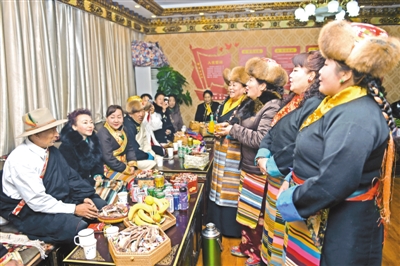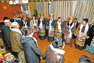 阿壩林卡社區(qū)的漢族干部朱鋼連續(xù)幾年都是一起和當?shù)馗髯迦罕娺^年。他說:“藏歷新年和農歷春節(jié),因工作原因雖然不能回家,但和藏族群眾一起過年,就像回到家里一樣。”