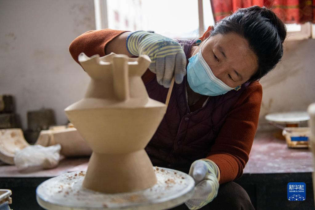 這是在昌都市察雅縣的產(chǎn)業(yè)車間加工完成的器皿(4月8日攝)。新華社記者 周荻瀟 攝