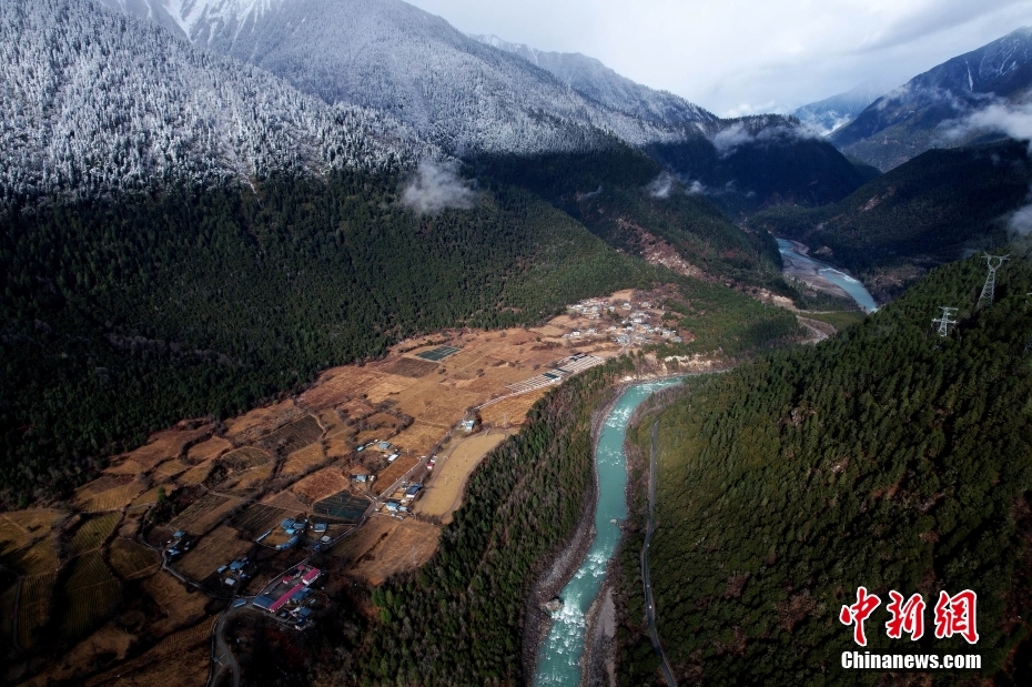 2月22日,航拍西藏林芝帕隆藏布雪景。林芝位于西藏東南部,平均海拔約3100米,氣候濕潤(rùn)。(無人機(jī)照片)