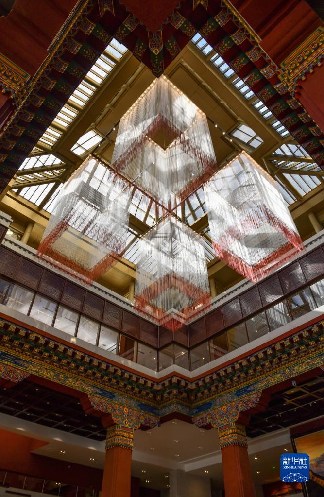 這是西藏博物館內(nèi)部的藏式風格建筑裝飾(6月29日攝)。新華社記者 晉美多吉 攝