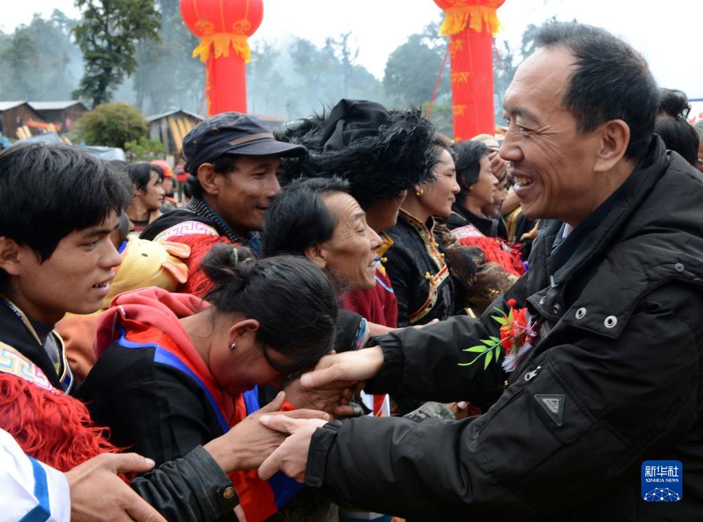 2013年10月31日,墨脫縣通車,當?shù)厝罕姼兄x建設者。墨脫公路于10月31日正式通車,這標志著墨脫將正式擺脫“全國唯一不通公路縣”的歷史。新華社記者 覺果 攝