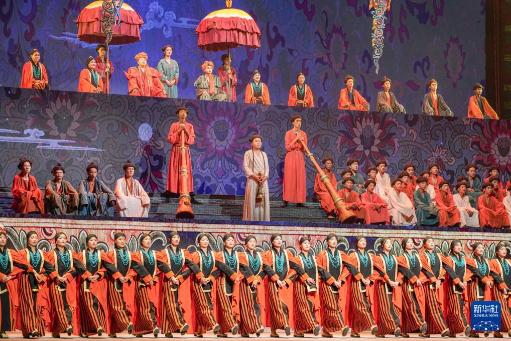 7月19日在西藏拉薩拍攝的《緣起象雄·古格遺風(fēng)》情景歌舞詩演出現(xiàn)場。新華社發(fā)(格桑雍珍 攝)
